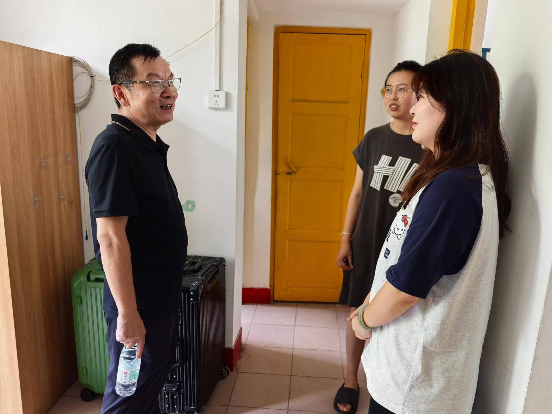 为切实了解2025级新生入学适应情况,助力新生快速融入大学生活,学院党委书记刘元文、院长石元伍一行深入新生宿舍,实地查看寝室环境、与学生们进行亲切交流,为他们送去四虎