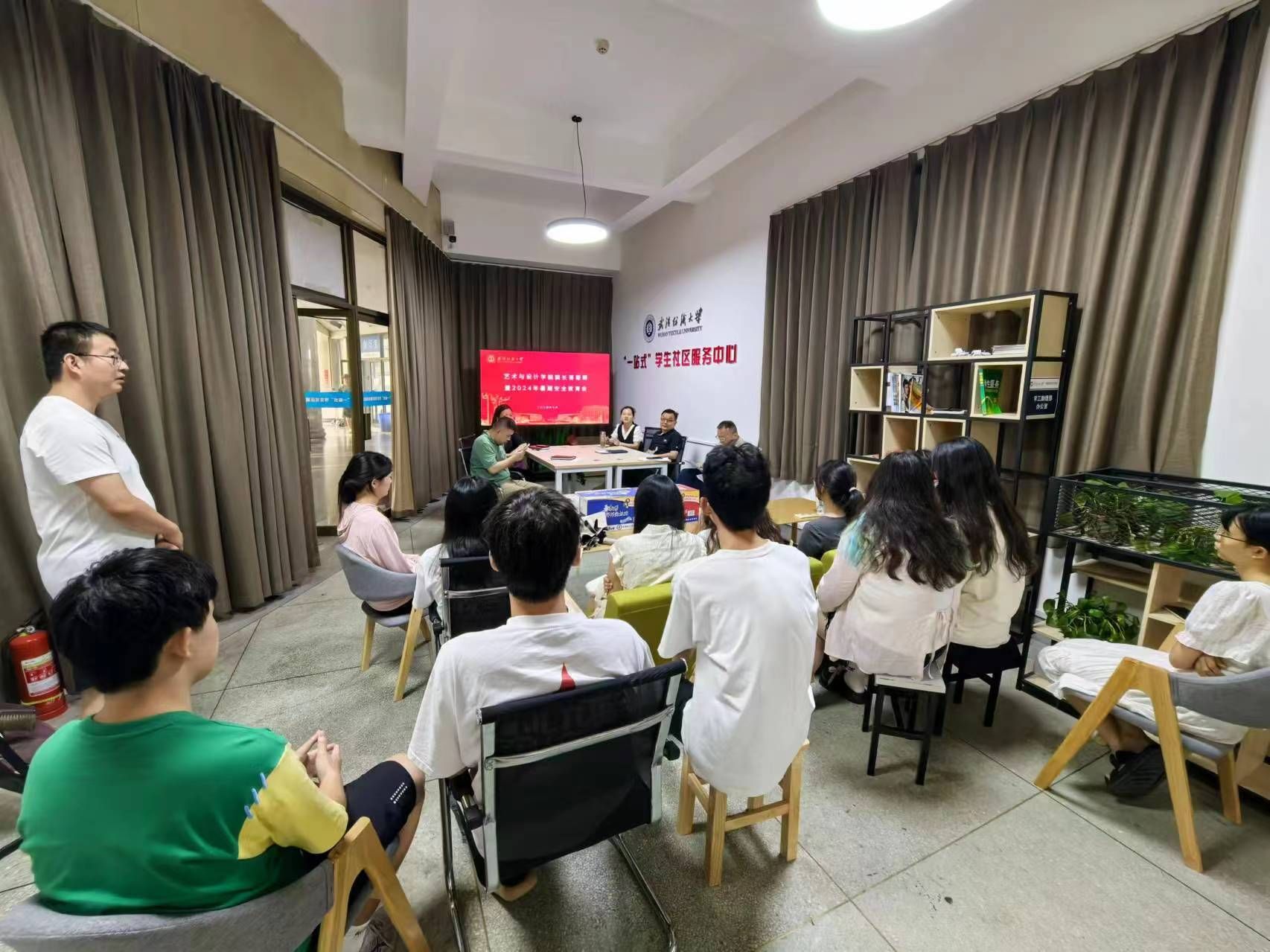 为切实做好暑期学生留校工作,进一步引导学生增强安全意识,提高防范能力,关心关爱留校生学习、生活情况,舒缓备考压力,增强备考信心,7月11日下午,艺术与设计学院在南湖校区一站式学生服务社区举行院长答疑课暨暑期安全教育会议,学院党委书记刘元文、院长石元伍、副院长曹凯、副院长刘凡、党委副书记吴双、2021级本科生辅导员张啸海、留校考研学生代表参加座谈会。